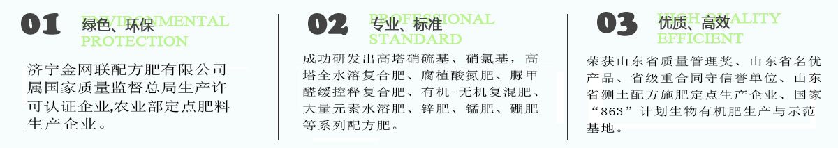 濟寧金網(wǎng)聯(lián)配方肥有限公司屬國家質量監(jiān)督總局生產許可認證企業(yè),農業(yè)部定點肥料生產企業(yè)。公司技術力量雄厚,生產工藝先進,原料上乘,與著名高等院校、農科院所和知名企業(yè)精誠合作,成功研發(fā)出高塔硝硫基、硝氯基,高塔全水溶復合肥、腐植酸氮肥、脲甲醛緩控釋復合肥、有機-無機復混肥、大量元素水溶肥、鋅肥、錳肥、硼肥等系列配方肥。